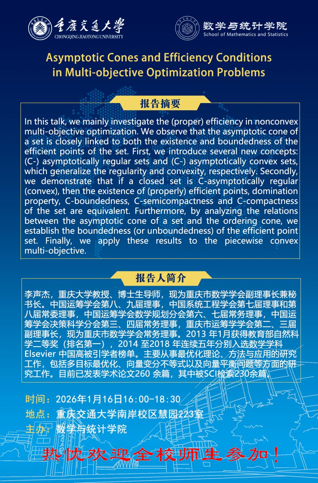 【学术报告】Asymptotic Cones and Efficiency Conditions in Multi-objective Optimization Problems