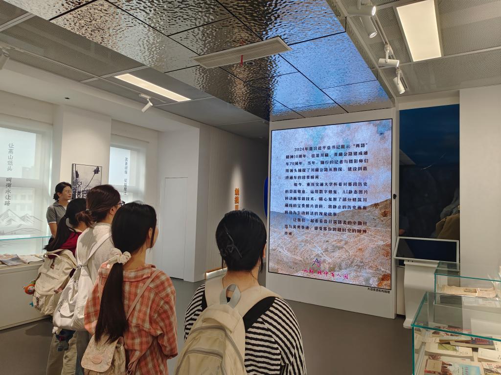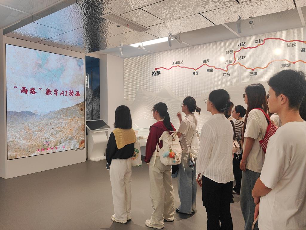 走进室内展馆,张老师结合AI导览技术动态呈现的川藏、青藏公路建设影像,将“两路”从蓝图规划到攻坚克难的全过程进行详细讲解。从筑路军民在极端恶劣环境中“一不怕苦、二不怕死”的奋斗故事,到“顽强拼搏、甘当路石”的精神传承,再到“军民一家、民族团结”的深厚情谊,每一段历史都让学员们深受触动。学员们屡屡驻足,凝视着展览馆陈列的实物,目光久久停留,试图探寻其中蕴含的奋斗底色和精神力量。