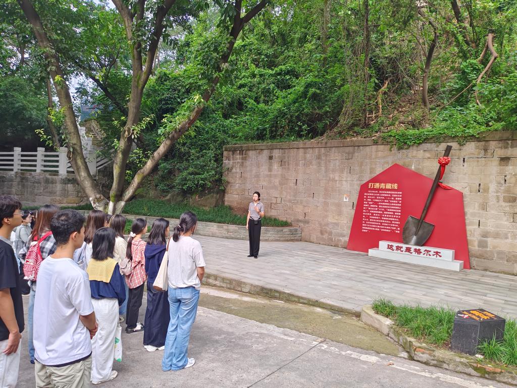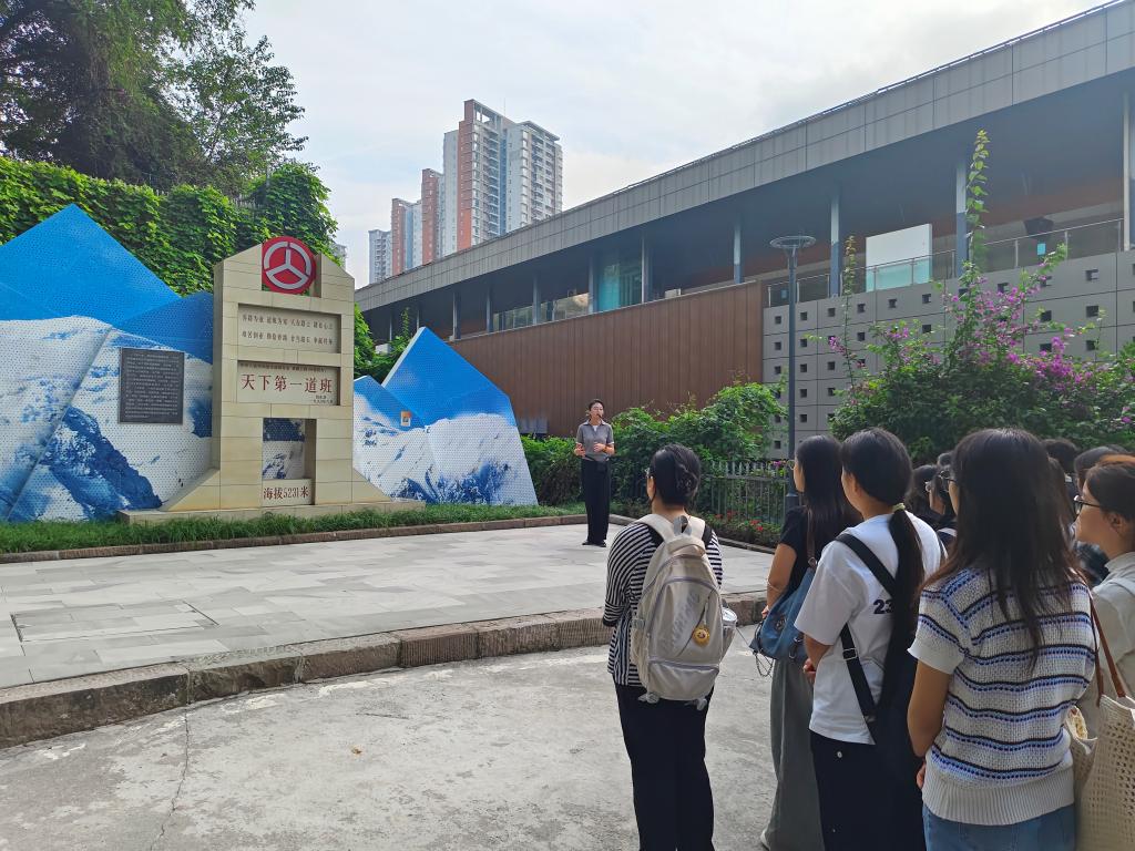 步入“两路”精神育人园室外参观区,讲解员张嫦莉老师为学员们揭开了育人园选址的深意——这里不仅能够直观还原“两路”特征,让参观者更容易代入“两路”建设现场,更是联结师生、校友与“两路”历史的“乡愁之地”,承载着学校与“两路”的深厚渊源。张老师沿着参观路线逐一驻足,为学员们详解每一处标志物的设计巧思与象征意义。先辈们的英勇形象,在生动的讲述中愈发清晰,深深地烙印在每一位学员的心中。