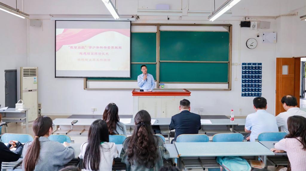学院重点培育的“数智启航”项目,旨在培养“数理语言翻译者”。该项目依托德园“两路”先锋“一站式”学生社区平台,面向我校教职工子女及科学城周边中小学生提供精准服务。项目创新构建了“数理筑基+智能赋能”培训体系,并开设“生活中的数学”趣味课堂与“AI背后的数学”科普讲座。学院院长王其林在颁发志愿者聘书时强调,需将“冰冷的符号”转化为“火热的探索”,依托学院技术积淀,引导大学生运用数理思维播撒科学种子。此举不仅彰显了学科价值,更是师生共情包容、携手服务社会的生动实践。