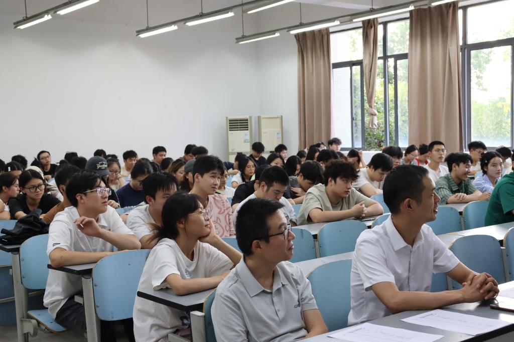 院长王其林从就业认知、机会把握、岗位匹配三个维度展开讲解。王院长强调,毕业生要清醒认识当前就业形势,主动挖掘就业机会;在岗位选择上,要遵循“先立足,再发展”的原则,积极争取优质岗位。党委副书记马在亮分析了学院近几年的就业情况,指出考研并非易事,提醒同学们需付诸切实努力。