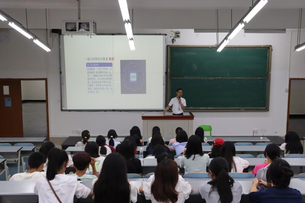 在专业认知教育环节,信息与计算科学系主任张雷面向2025级数学类新生,系统介绍了专业发展历程及学科竞赛情况,帮助新生清晰了解专业优势与发展前景;应用统计系主任李华为2025 级应用统计系新生详细解读了专业特色、培养目标、实践教学安排及行业发展趋势,引导新生结合自身兴趣与职业规划,制定科学的学习计划。系主任们深入细致的专业解读,解答了新生的疑惑,增强了其对未来学业发展的信心。