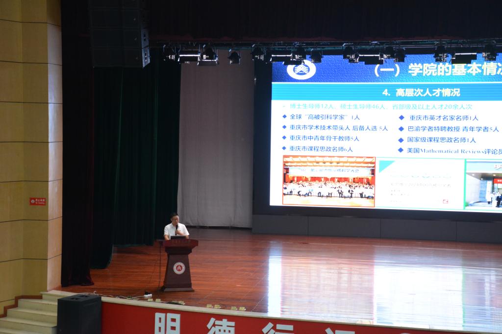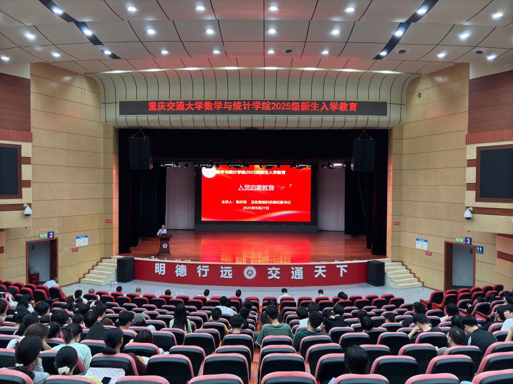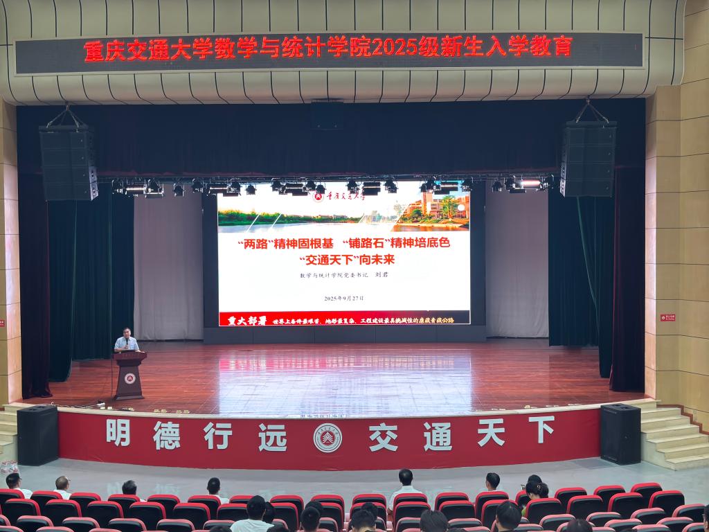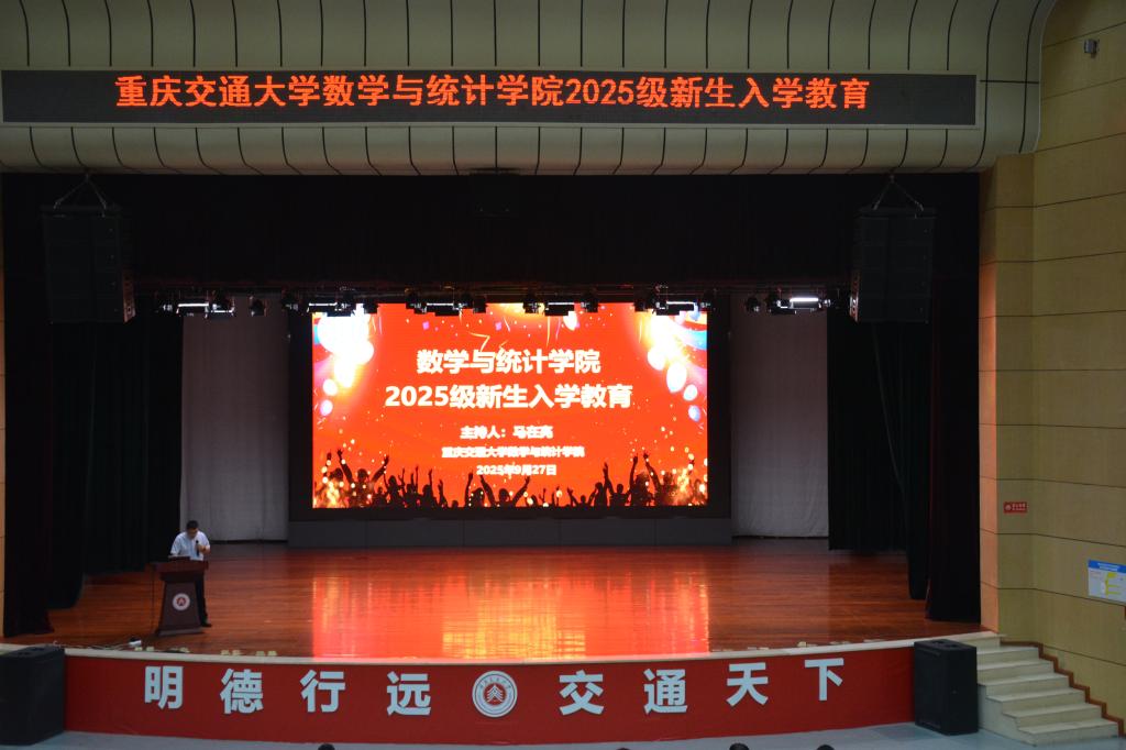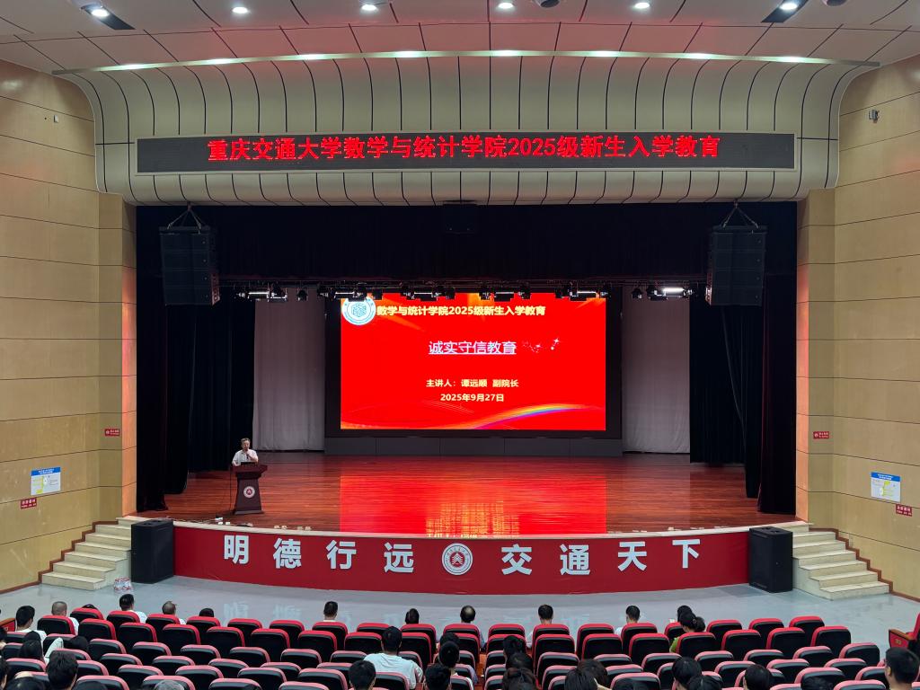 9月27日晚,科学城校区学生活动中心二楼座无虚席,数学与统计学院在此举行2025 级新生入学教育大会。此次入学教育围绕新生成长发展关键需求,精心设置诚实守信教育、入党启蒙教育、“两路” 精神教育、专业认知教育四大核心模块,为全体新生搭建起了解学院、明确方向、规划未来的重要平台。学院领导班子成员、各系(科)室负责人、新生辅导员以及2025级全体新生共同参与,大会由学院党委副书记马在亮主持。