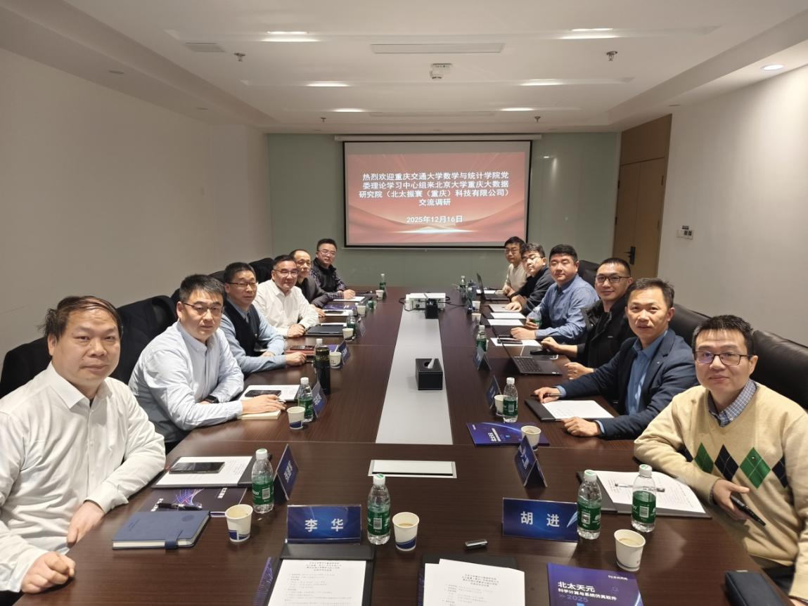 为助力“五大”学科群高质量建设,做好学院“十五五”规划编制,科学修订2026版本科人才培养方案,12月16日,重庆交通大学数学与统计学院党委理论学习中心组一行9人,前往北京大学重庆大数据研究院进行专题调研与交流。北京大学重庆大数据研究院基础软件科学研究中心副主任、北太振寰(重庆)科技有限公司CEO廖汉卿全程陪同调研活动。