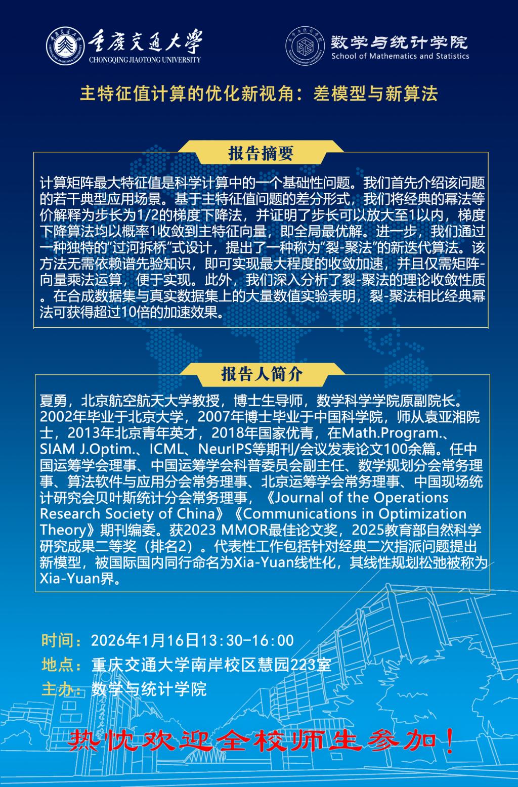 【学术报告】主特征值计算的优化新视角:差模型与新算法