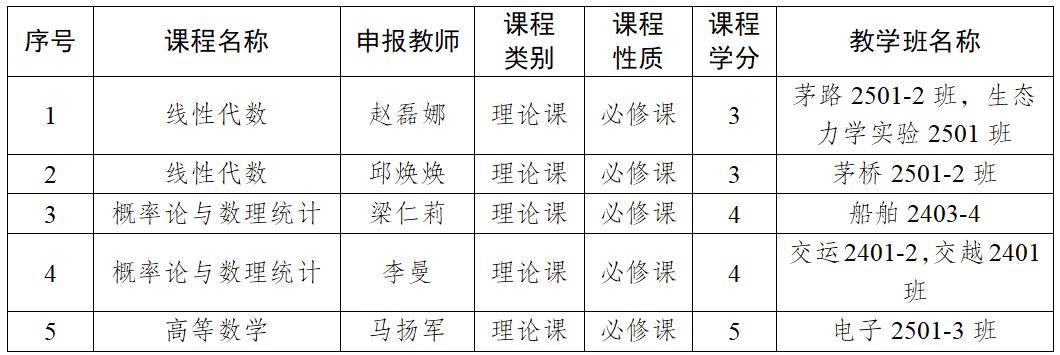 根据《重庆交通大学“优课优酬”奖励计划实施办法(试行)》和《关于申报2026年春季学期本科课程“优课优酬”奖励计划的通知》,经个人申请、推荐工作组初评,拟推荐《线性代数》等5门课程为2026年春季学期本科课程“优课优酬”奖励计划,现公示如下: