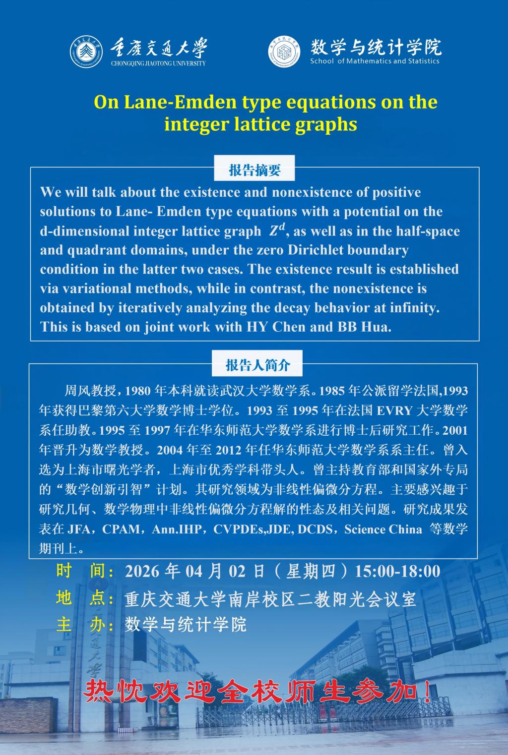 学术报告:On Lane-Emden type equations on the integer lattice graphs