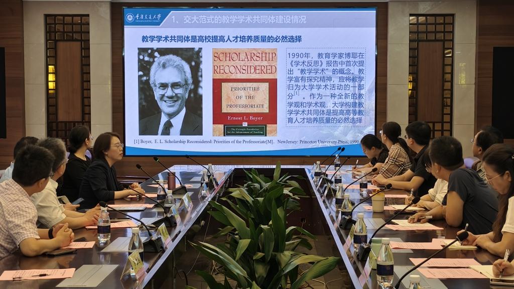 交流环节,我院国家教学名师赵磊娜教授分享了“双跨式”教学团队建设情况。西南科技大学数理学院张元元、赵超超两位老师分别做了高等代数、线性代数的课程展示,我院赵磊娜、张东培分别对两位老师的课程展示进行了分析评价,对两位老师的精彩展示给予肯定,同时提出了课程设计、教学展示等方面存在的不足。