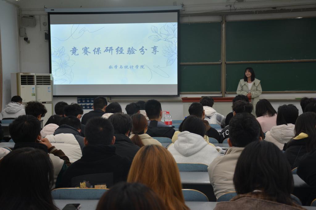 为帮助学生明确保研路径,解答升学困惑,11月21日,数学与统计学院在A01123教室成功举办 “竞赛保研经验分享” 活动。数学与应用数学2202 班吴洁同学任分享嘉宾,与在场同学进行交流。